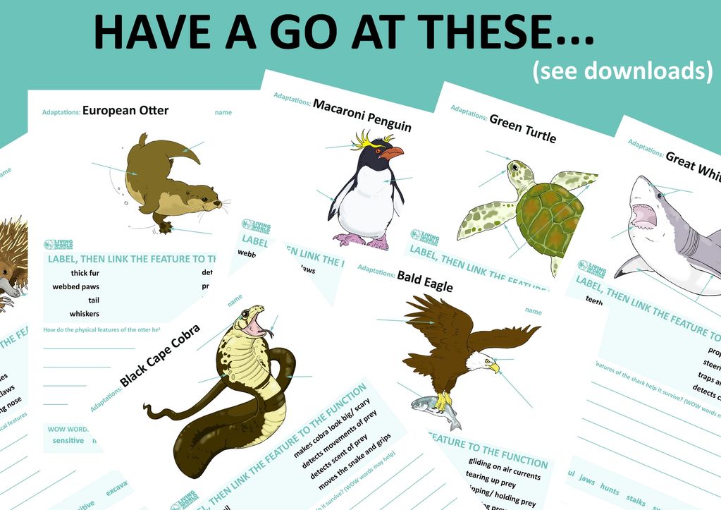 Now you've learnt about adaptations, have a go at applying your learning to these worksheets.